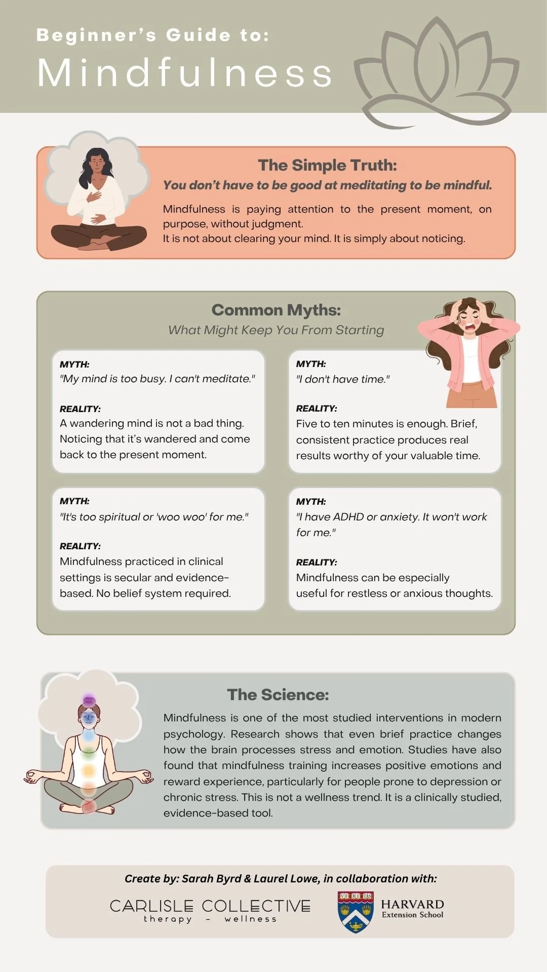 This is one of the most important myths to address, because it keeps some of the people who could benefit the most from mindfulness from ever trying it. Mindfulness is not synonymous with sitting still and clearing your mind. Movement based practices, body scans, and short structured exercises are all valid forms of mindfulness that work especially well for restless or anxious minds. If traditional meditation hasn't worked for you in the past, it may simply be that the format wasn't the right fit.